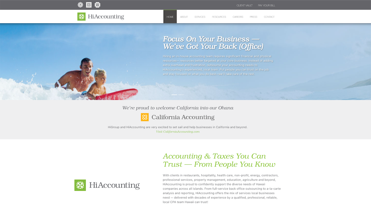 HiAccounting along with our parent company The Hawaii Group is proud to announce the launch of our new website! The redesigned site offers visitors richer insight into our company advantage, services and company benefits.