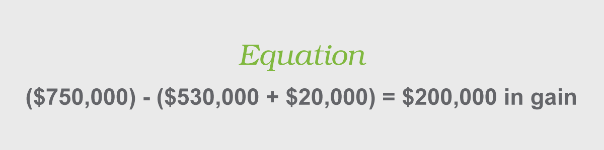 Example: John Smith, a single taxpayer, purchased a home as his principal residence for $530,000 on June 3, 2015. He resided in the house the entire time and spent $20,000 improving the home. On July 15, 2021, John Smith sold the home for $750,000, recognizing $200,000 in gain.